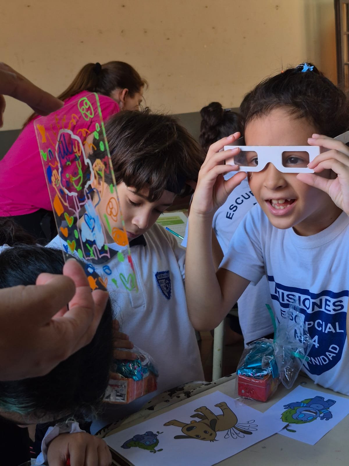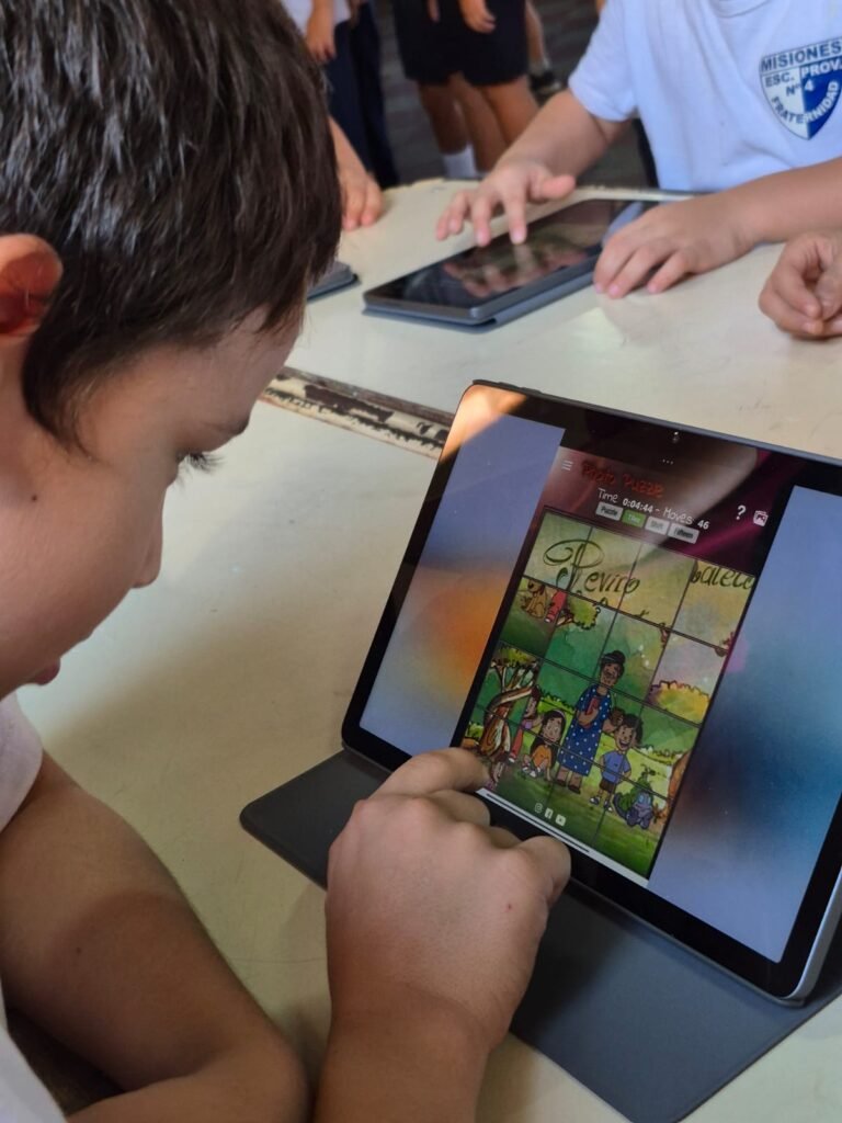 Durante la jornada, los alumnos disfrutaron de la proyección del cortometraje animado “Reviro y Mate Cocido”, que funcionó como disparador para una serie de actividades lúdicas y educativas. Entre ellas, experiencias con realidad virtual, juegos interactivos, desafíos didácticos como rompecabezas, crucigramas y sopas de letras con contenidos de Misiones, pensados para incentivar la participación y el trabajo colaborativo.
